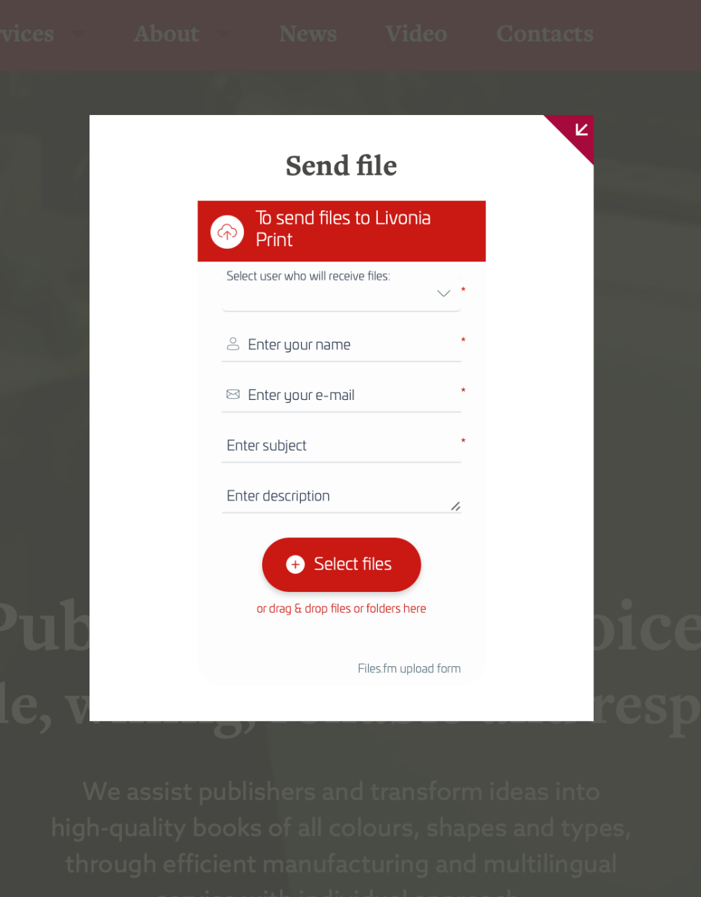 Data servers are located in a secure center to ensure fast upload and download speeds for you and your customers. File uploads are automatically resumed in case of network interruption. Data upload is encrypted. Files are scanned with antivirus.